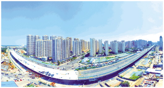 零点立交与二环东高架路成功“牵手”。零点立交拆除重建是济南黄河公路大桥扩建工程的重要组成部分,8月8日,在济南零点立交施工现场,记者看到新建的零点立交已与二环东高架路实现了对接。零点立交共设14条匝道,是省内首座“三通”涡轮形枢纽立交,可实现高速公路、城市快速路和城市主干路三者间的转换。