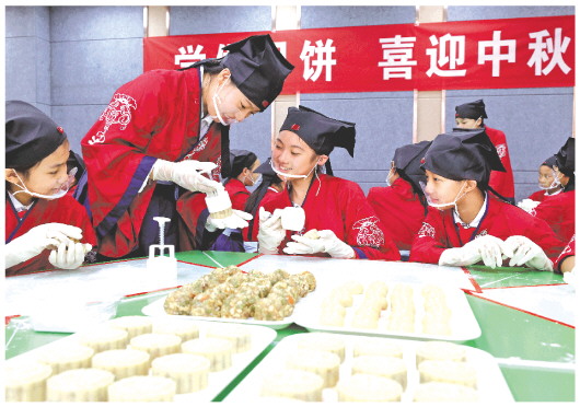 9月26日,枣庄市文化路小学开展“学做月饼喜迎中秋”民俗文化体验活动,学生们身着传统服饰在老师的指导下学习制作月饼,感受传统文化的魅力,喜迎中秋佳节。