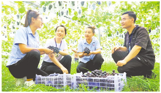 新泰市纪委监委紧盯乡村振兴重点项目运行和惠民惠农政策落实情况,组织纪检监察干部深入田间地头、产业一线开展精准监督,着力解决群众急难愁盼问题。图为该市纪检监察干部在当地葡萄种植园区了解生产情况。