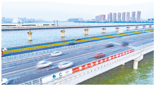 本报青岛10月31日讯 今天上午,青兰高速双埠至河套段改扩建工程建成通车(上图)。此次通车的双河段位于青兰高速全线起点,是连接青岛胶州湾两岸三区的跨海大通道。通车后,市民驾驶汽车可2分钟跨越胶州湾,实现主城区与胶东国际机场快速通行。