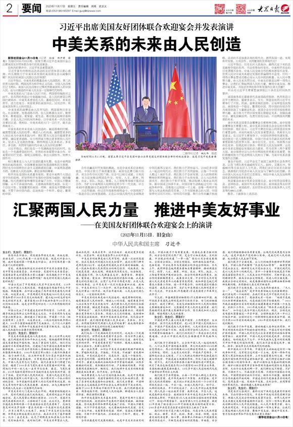 汇聚两国人民力量 推进中美友好事业