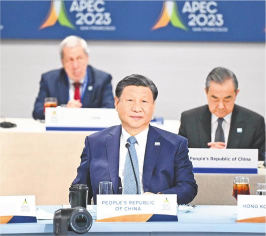 当地时间11月16日中午,国家主席习近平在旧金山出席亚太经合组织领导人同东道主嘉宾非正式对话会暨工作午宴。 □新华社记者 谢环驰 报道