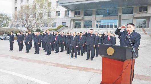 12月4日8时30分,在第十个国家宪法日到来之际,枣庄市中级人民法院举行宪法宣誓仪式。“我宣誓:忠于中华人民共和国宪法,维护宪法权威,履行法定职责,忠于祖国、忠于人民,恪尽职守、廉洁奉公,接受人民监督,为建设富强民主文明和谐美丽的社会主义现代化强国努力奋斗!”全体干警整齐肃立,右手举拳,集体宣誓。