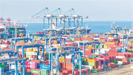 本报青岛讯 1月1日16:10,在刚刚投产运营的全国首个全国产全自主自动化码头——山东港口青岛港自动化码头(三期)作业现场(上图),“新泉州”轮最后一个集装箱顺利装船,桥吊平均单机作业效率达到60.2自然箱/小时,山东港口青岛港自动化码头第十次刷新装卸效率世界纪录。