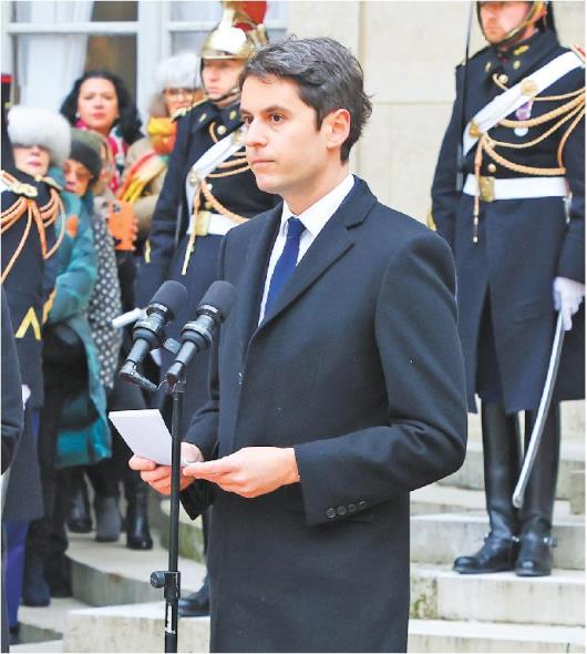 1月9日,加布里埃尔·阿塔尔在法国巴黎总理府出席权力交接仪式。(□新华社发)