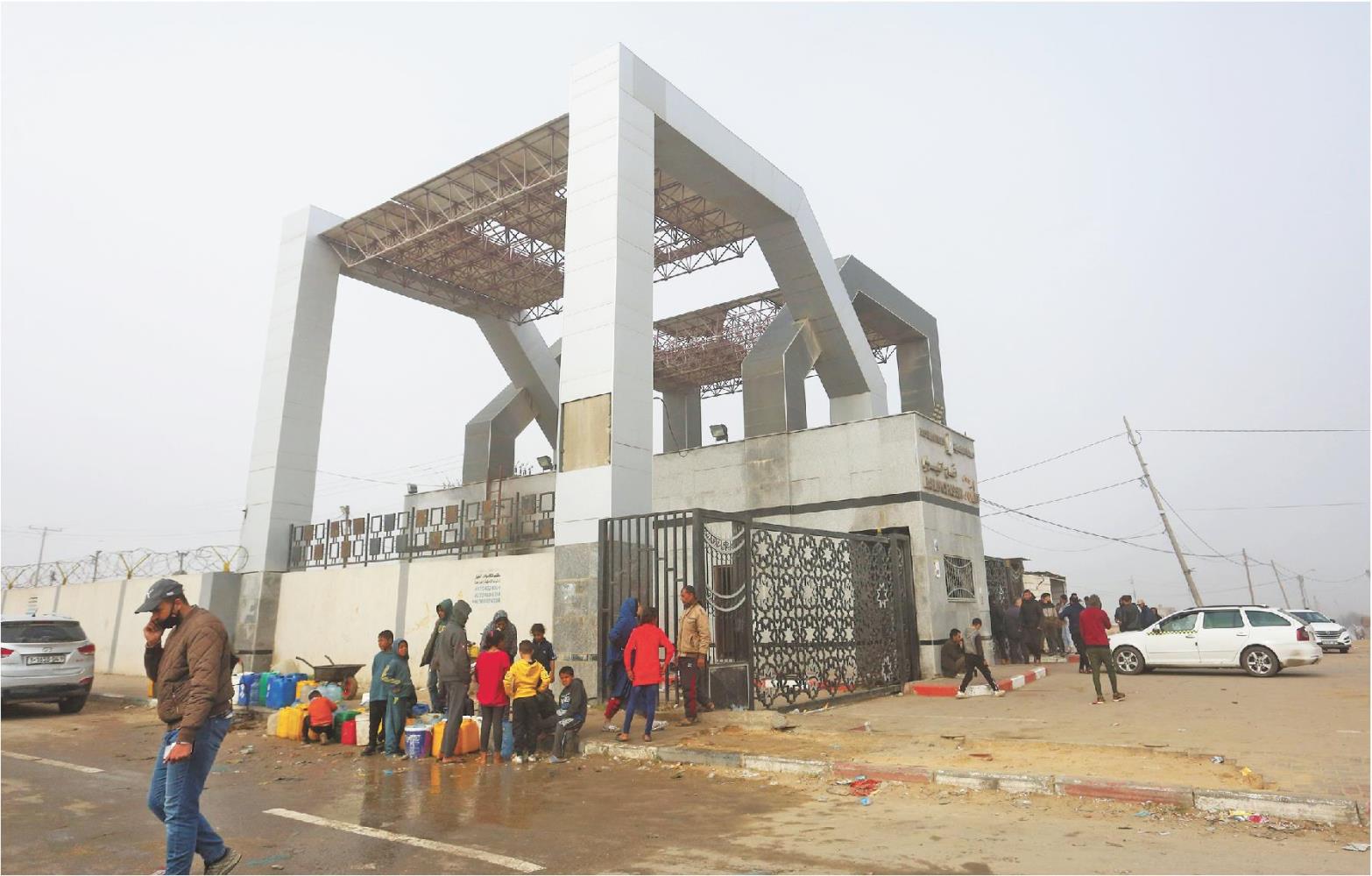 2月25日,人们在拉法口岸加沙一侧等待前往埃及。