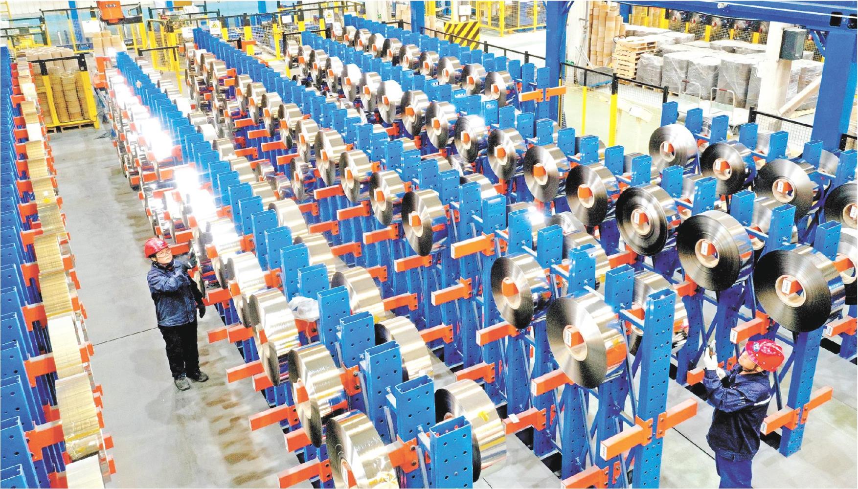近日,在位于青岛市即墨区的青岛云路先进材料技术股份有限公司,工人在生产出口到海外市场的非晶带材产品。
