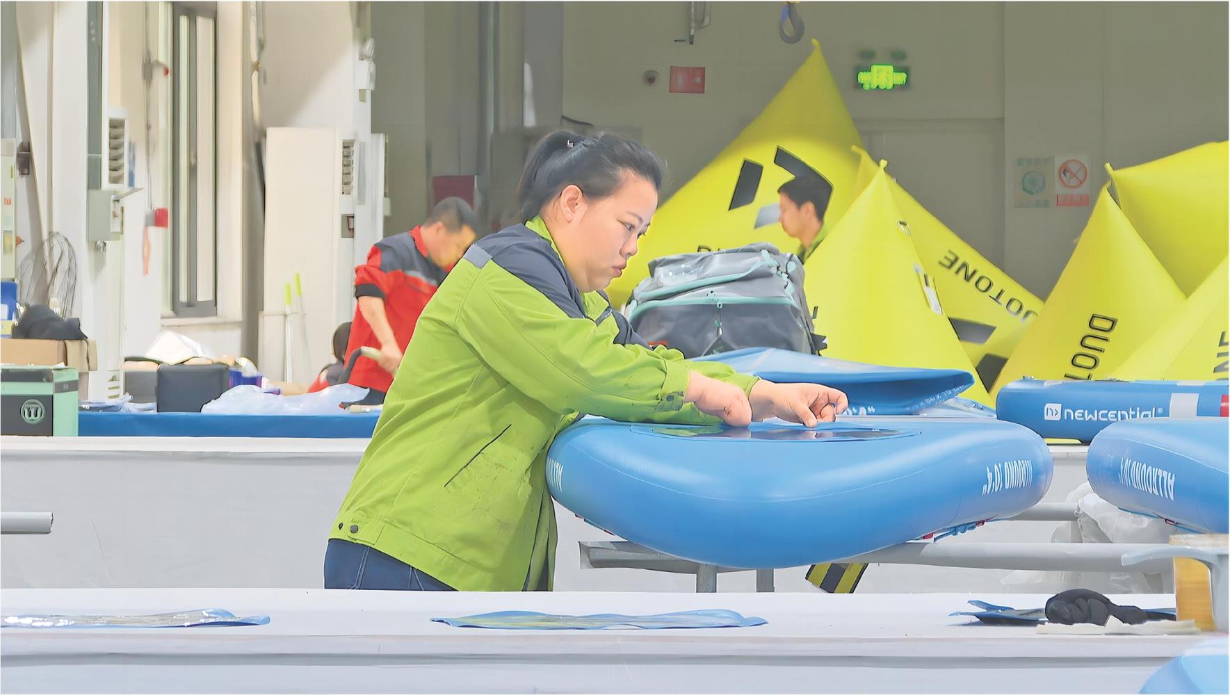 如今,热衷于户外运动的群体越来越多,桨板需求量快速增长。“国内的户外需求有明显增长,我们公司的订单也‘水涨船高’。2024年,我们将不断开发优质新产品,提高品牌整体竞争力,销售额争取要比去年增长30%以上。”山东创意集团有限公司总经理冯彬介绍。