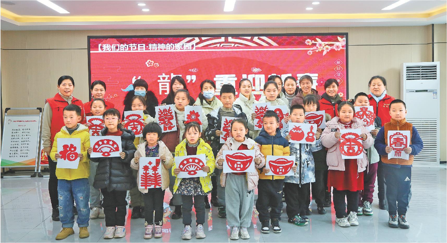 近日,宁阳县文庙街道组织志愿者与居民相聚新时代文明实践站,开展系列文化活动。图为该街道在梧桐里社区新时代文明实践站开展新春纳福、文艺汇演等活动。