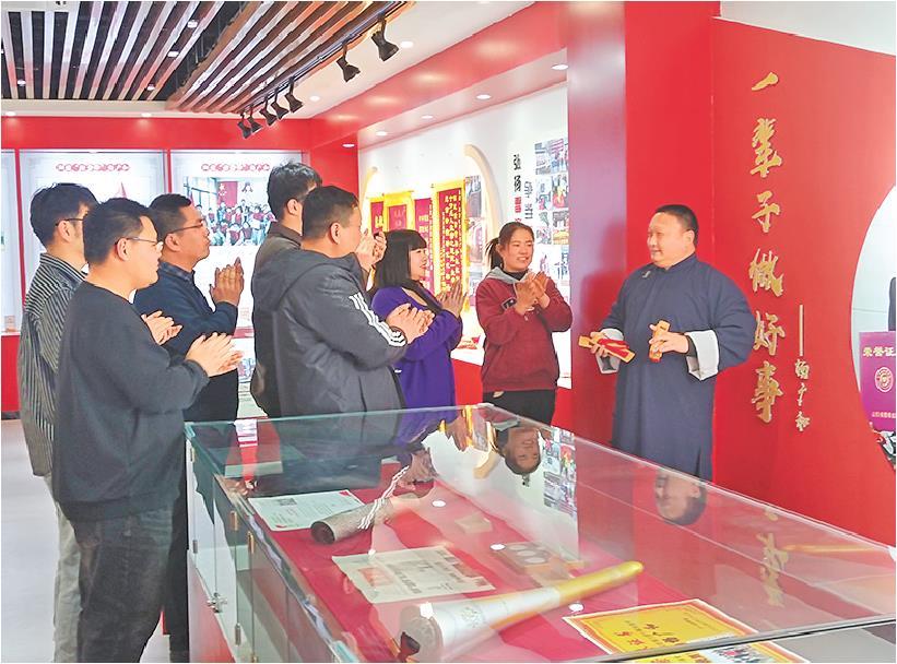 在2024年“学雷锋活动日”即将到来之际,阳信县非遗保护和文化研究中心副主任林涛在阳信县同心院展厅利用“文艺+宣讲”的方式,向前来参观的群众宣讲雷锋精神。阳信县不断创新宣讲方式方法,接地气、聚人气,受到群众欢迎。