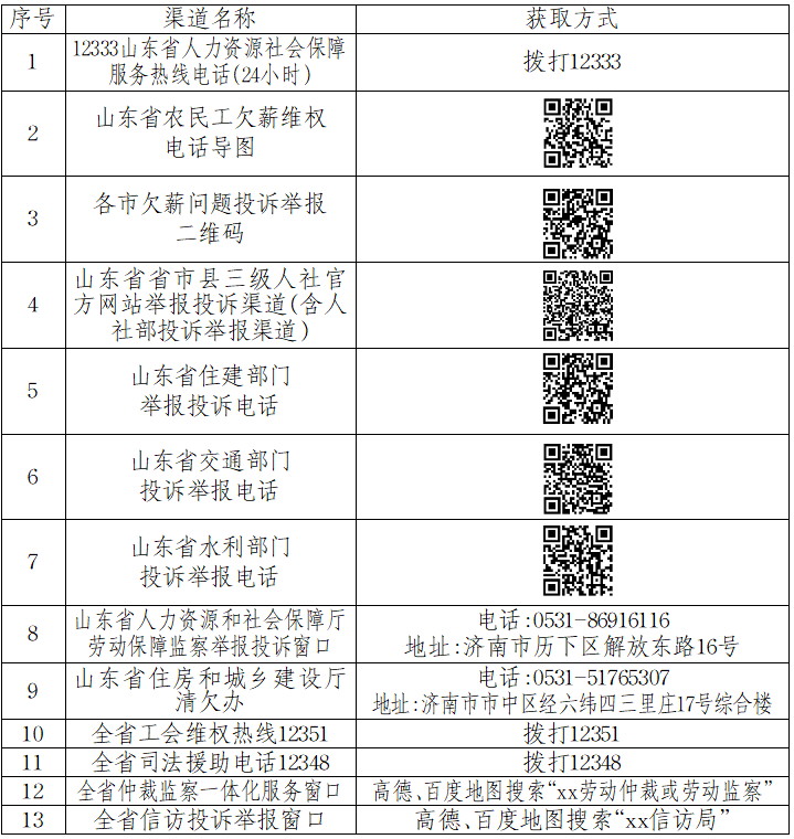 为方便农民工举报投诉欠薪线索,切实维护劳动者合法权益,我省公开发布13条举报投诉渠道。农民工遇到拖欠工资问题,可选择以下途径进行举报投诉。