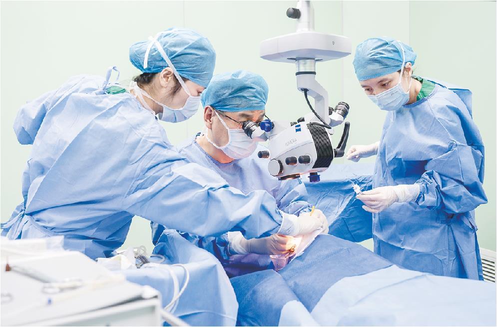 山东第一医科大学附属省立医院(山东省立医院)眼科主任张晗教授为白内障患者实施复明手术