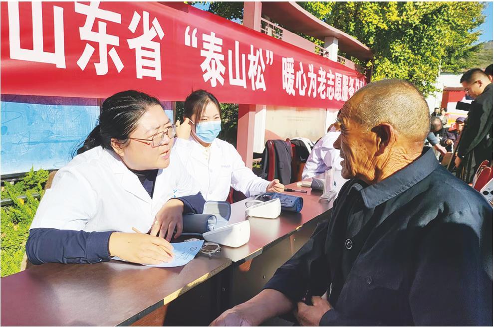 省“泰山松”暖心为老志愿服务总队队员在泰安市岱岳区下港镇大林村开展中医义诊活动