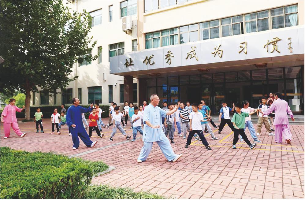 山东老年大学志愿者在育秀小学培训24式太极拳