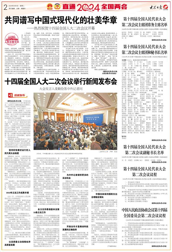 第十四届全国人民代表大会第二次会议主席团和秘书长名单
