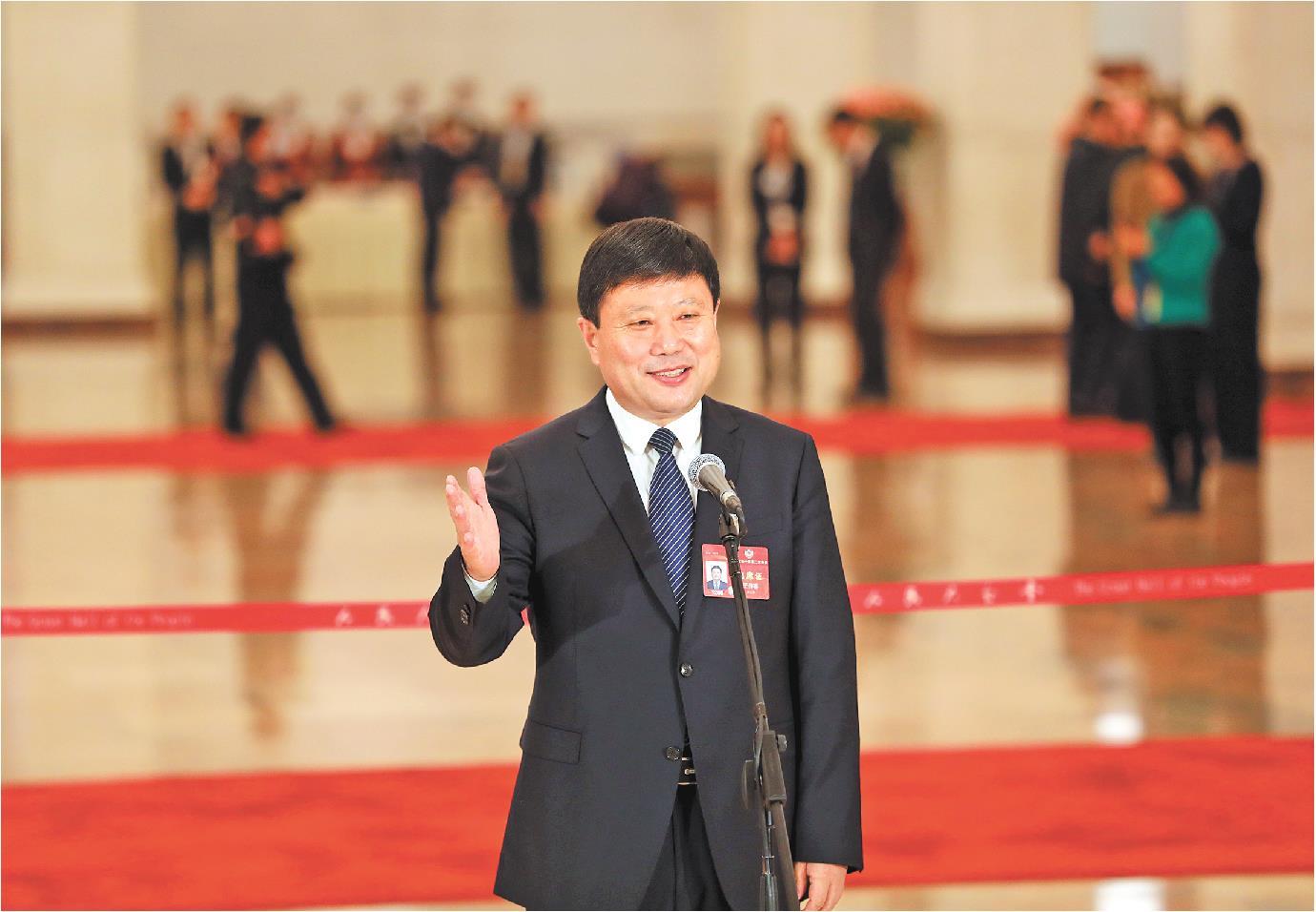 3月10日上午,王传喜亮相第三场“委员通道”,分享代村发展的故事,并邀请大家到兰陵代村、到全国各地的美丽乡村去看一看。 □记者 卢鹏 报道