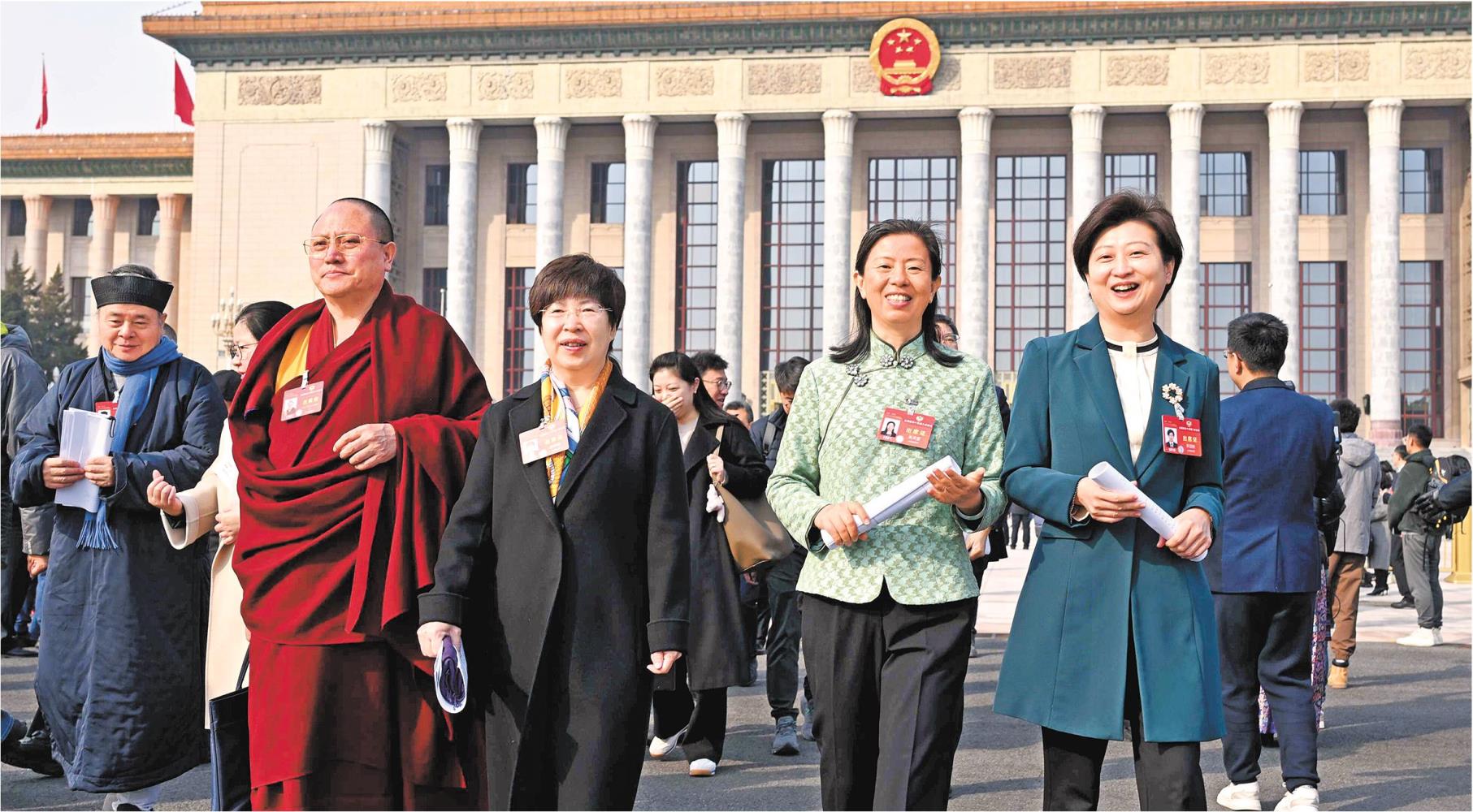 3月10日,中国人民政治协商会议第十四届全国委员会第二次会议在北京人民大会堂举行闭幕会。这是闭幕会后,委员们走出人民大会堂。
