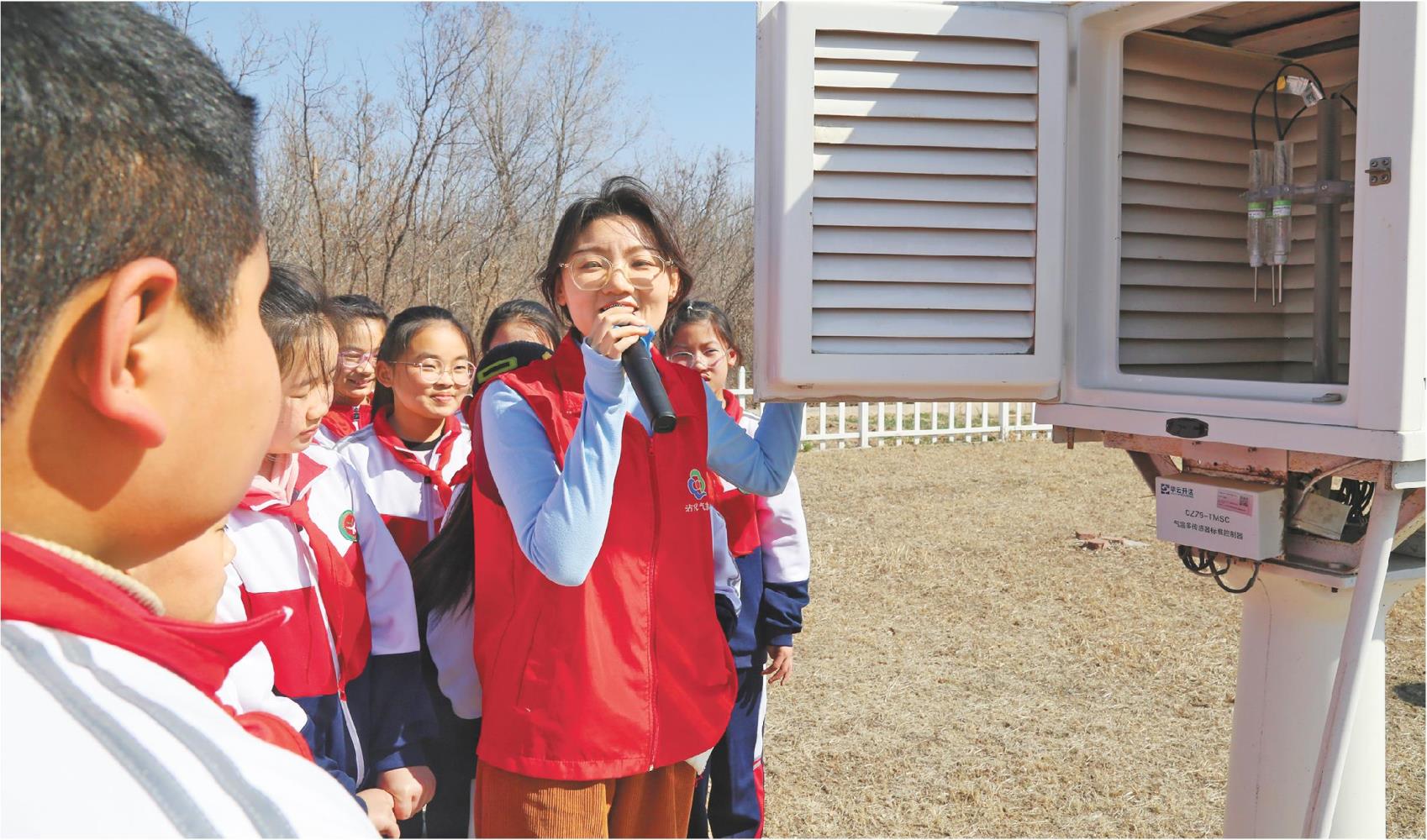3月23日是世界气象日。近日,在滨州沾化国家基本气象站,工作人员向利国乡马营小学的学生们介绍气象知识。通过观看气象科普片、学习气象仪器工作原理等环节,引导学生们关心气象科学。