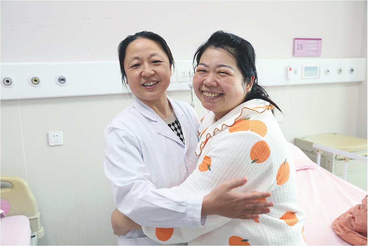2月19日13点16分,即将从产科病房出院的孙秀诗(右)与王婷医生(左)拥抱告别。