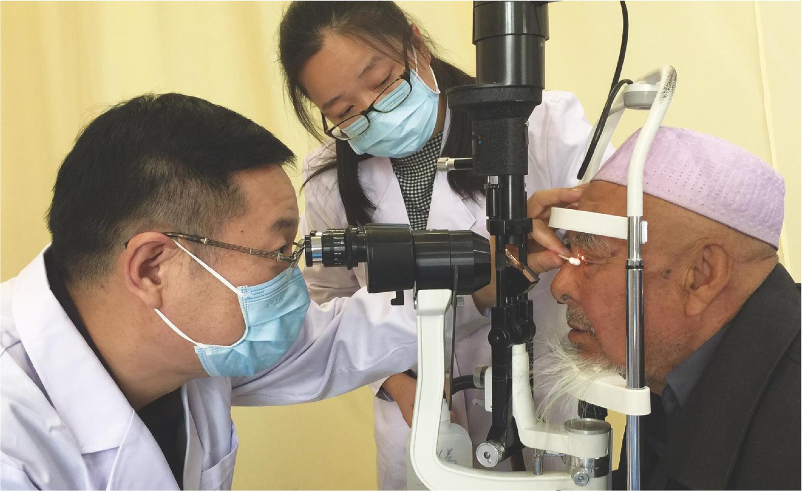张晗在甘肃积石山县进行“光明行”活动时,为术后患者复查。