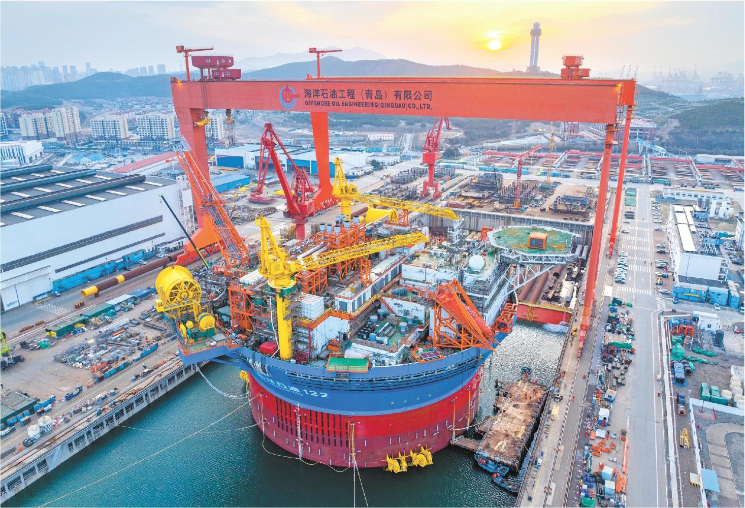 本报青岛讯 近日,由我国自主设计建造的亚洲首艘圆筒型FPSO“海上油气加工厂”——“海洋石油122”FPSO(浮式生产储卸油装置),在海油工程青岛场地成功下水并出坞,标志着项目建设取得关键进展,为项目年内投产奠定坚实基础。