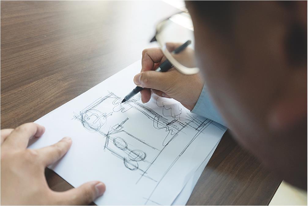 绘制设计草图时,李晓东需要将客户的需求和想法具象化,用直观的艺术元素呈现出来。