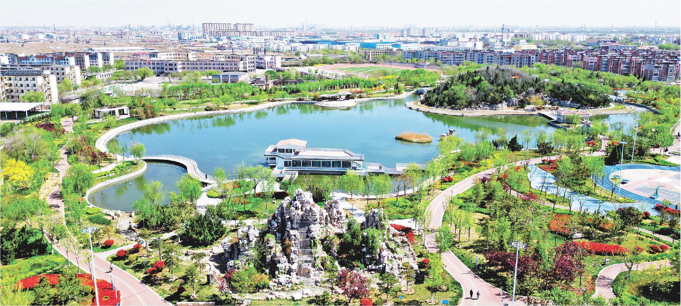 4月16日,航拍东营市东营区辛店街道供应公园春日美景(图)。东营市坚持“生态打底”,做足“绿”、做活“水”、做美“景”,通过建设口袋公园、湿地公园、体育公园、街头游园、城市绿道等各具特色的城市生态景观,让市民享受“绿色福祉”。