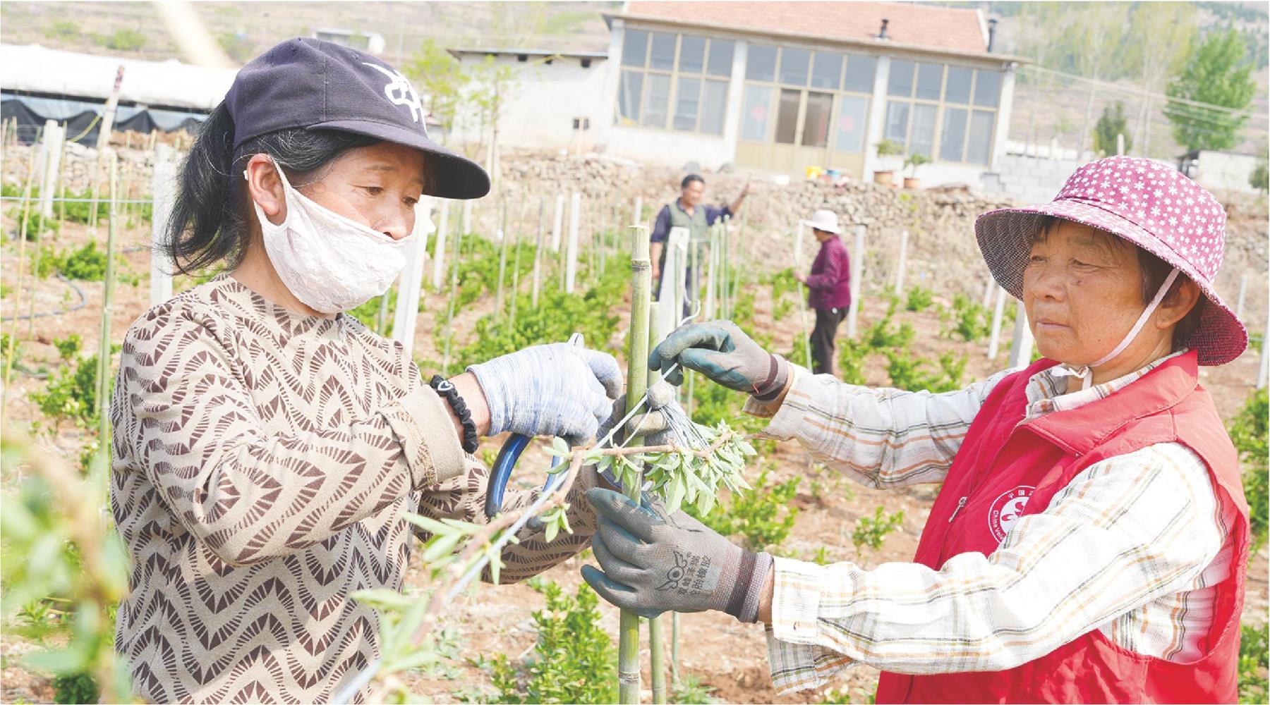 几公里外的中施家峪村,连片的金银花绽放新绿,村党支部书记、村委会主任李传文和村民正在给金银花上架、修枝。“金银花上架后,能获得充分的日照,长得又快又好。”李传文说,金银花看似不起眼,但全身都是宝,花可以做药材,枝蔓可以做饲料。村里种了30亩金银花,去年新栽的苗,今年开花比较少,估计能有几万元的收入。等到来年大规模开花,收入会成倍增长。金银花上架、修枝需要大量劳动力,这让村里的闲置劳动力有了新活计、新收入。中施家峪村地处山区,四季分明、光照充足,非常适宜金银花生长。尽管还没到收获的季节,但是安徽等地的订单已经来了。李传文表示,准备扩大金银花的种植规模,采购配套的加工设备,争取把特色产业做大做强,让金银花真正成为村民的“致富花”,为乡村振兴注入“绿色动能”。