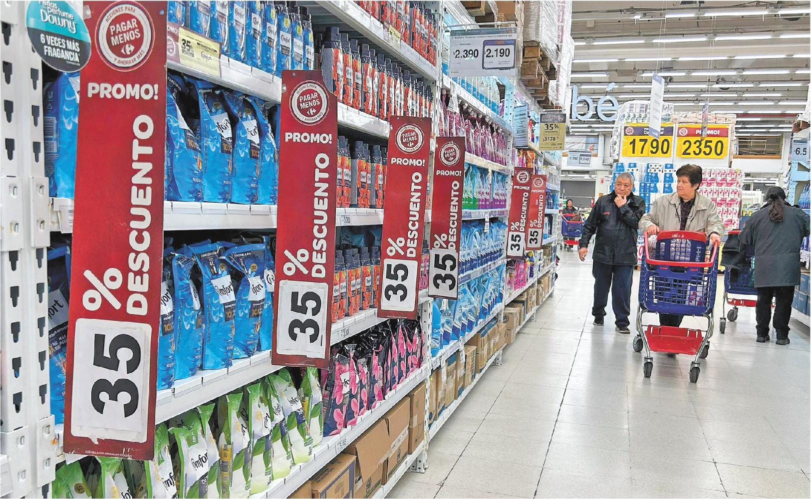 5月14日,人们在阿根廷布宜诺斯艾利斯一家超市购买生活用品。