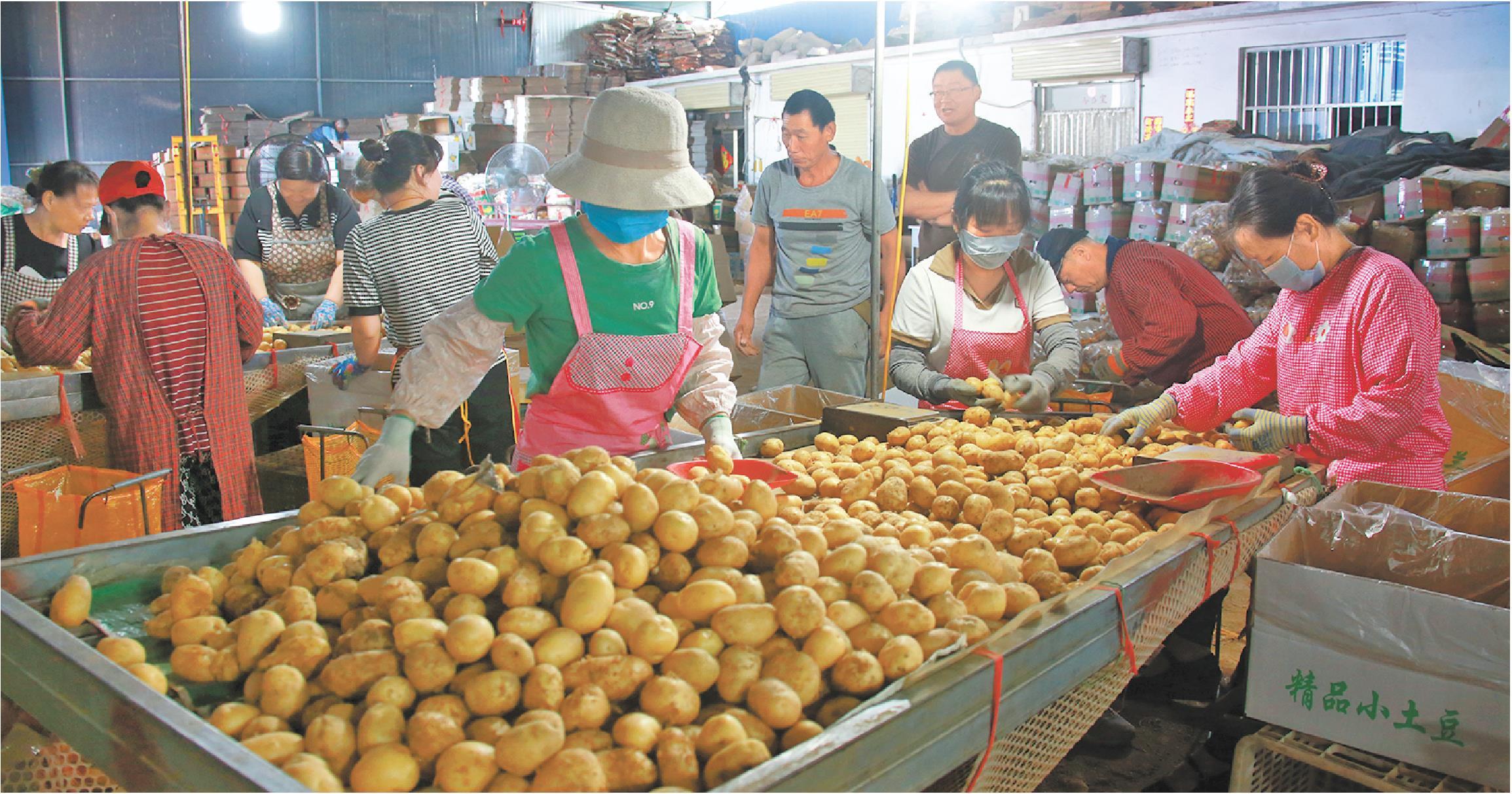 当地政府积极引导种植户转变以往“地里刨、小车推、赶集卖”的传统观念,锚定自身特色,走家庭种植、抱团发展的路子;创办和吸引加工营销公司,构建工厂化加工、大市场经营模式。如今,土豆从地里收获之后,就会被集中到购销公司,通过土豆分拣机按大小分等级做外包,从而提升了土豆的身价。