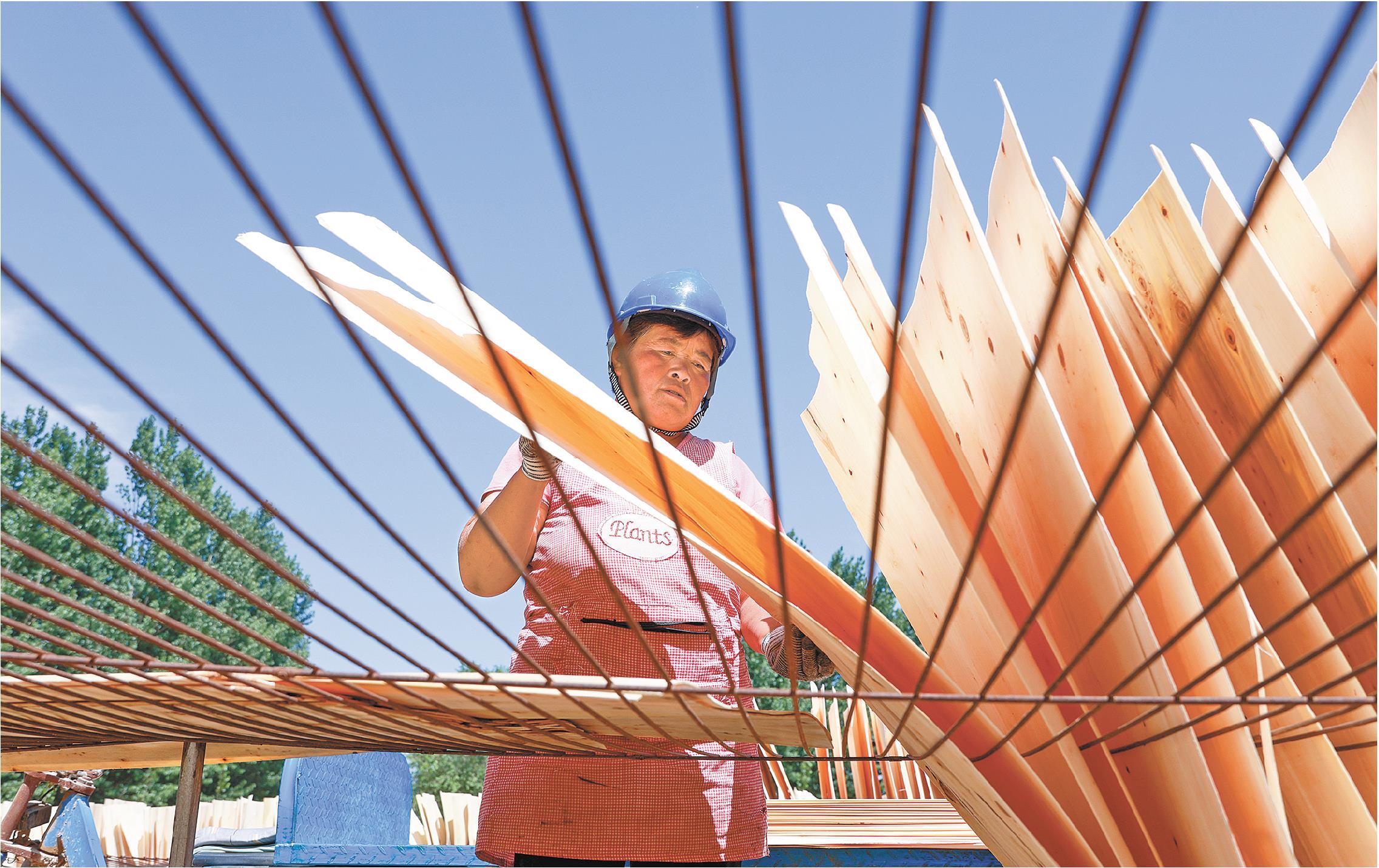 本报聊城讯 6月4日,在聊城市茌平区菜屯镇一家木材加工厂,工人正在晾晒木皮(上图)。