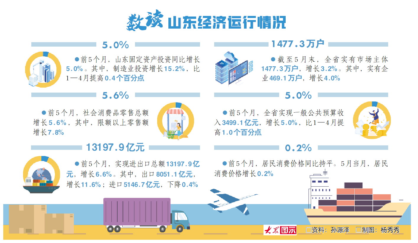 前5个月山东经济延续稳定向好态势