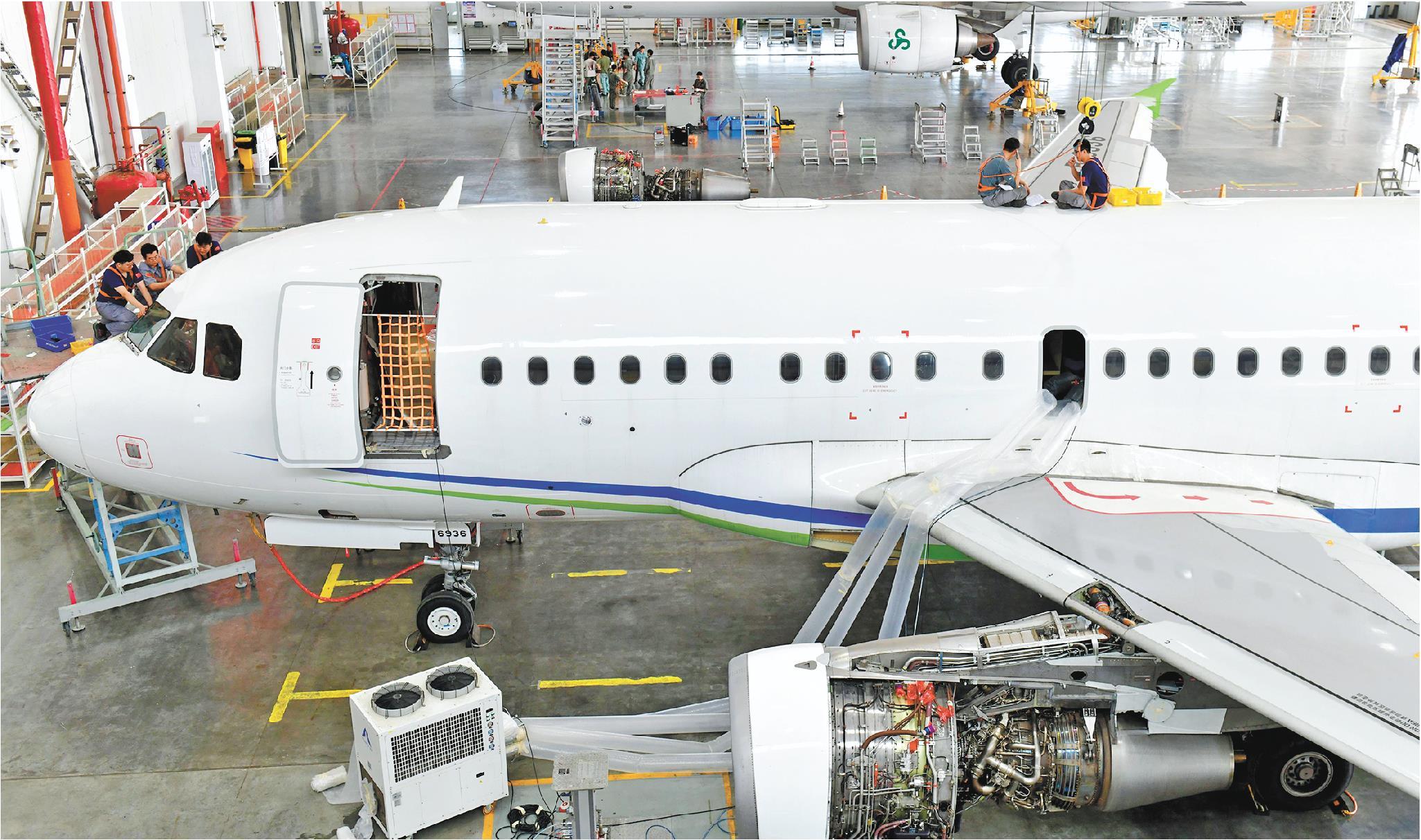 6月20日,在日照市东港区山太飞机维修基地,员工对飞机进行维修。近年来,日照依托2.3万平方公里的低空空域资源和职业院校通用航空人才培养优势,着力培育发展“低空经济”。(□新华社发)