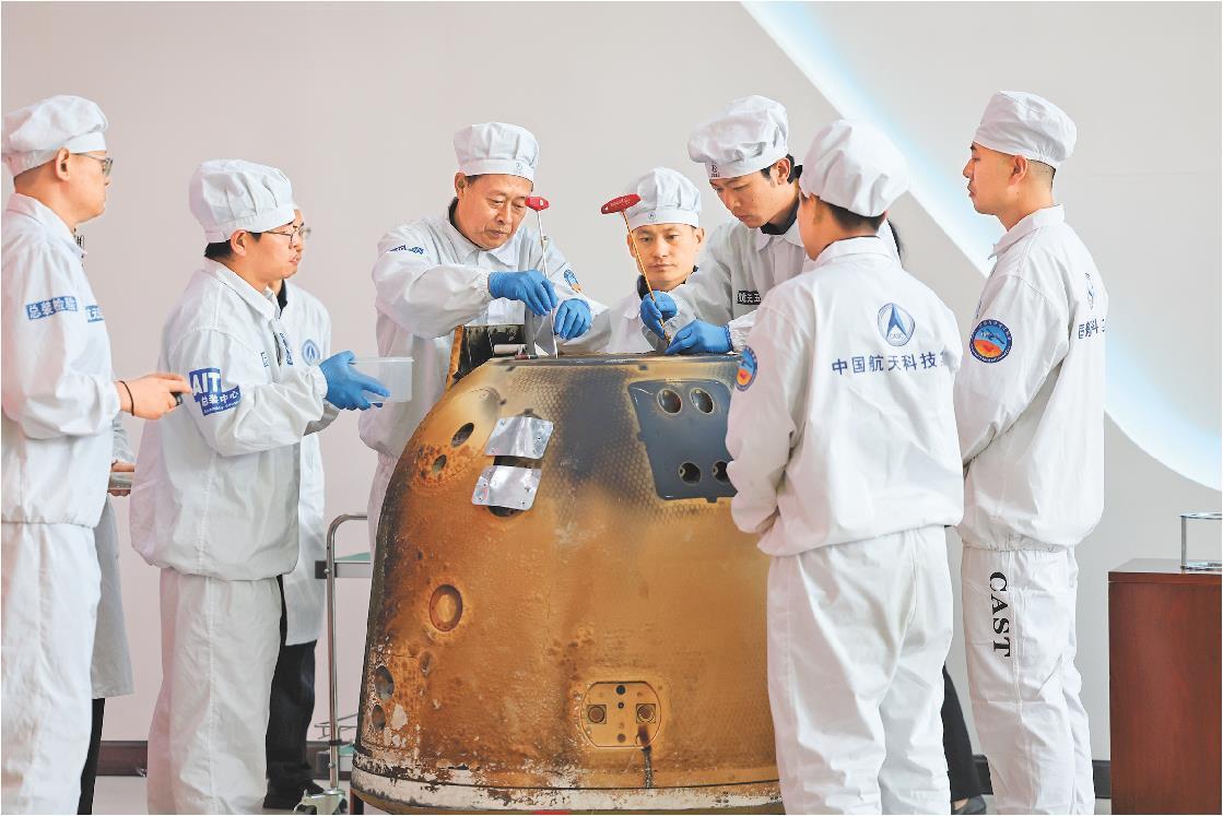 6月26日下午,嫦娥六号返回器开舱活动在中国航天科技集团五院举行。(□新华社发)