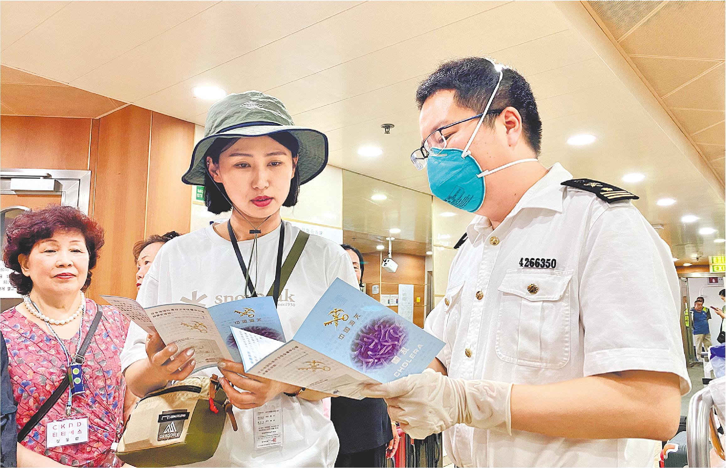 为保障游客抵达后顺畅通关,日照海关提前掌握旅游观光团人数、入境时间、班轮司乘人员和旅客健康状况等信息,积极与口岸联检单位配合,落实落细运输工具登临检查、旅客通关查验措施,做好突发事件应急处置相关预案,为入境旅客提供安全、优质、高效的通关服务。