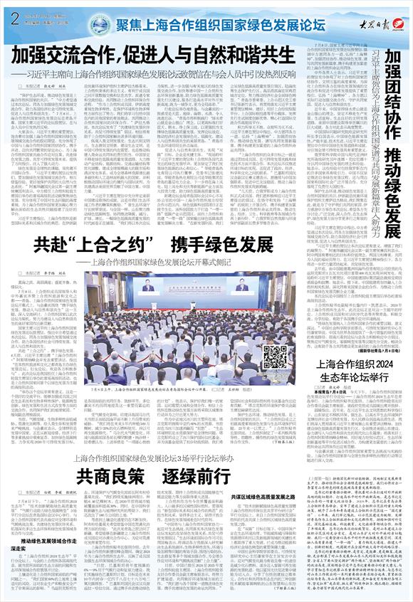 -大众日报-02-聚焦上海合作组织国家绿色发展论坛