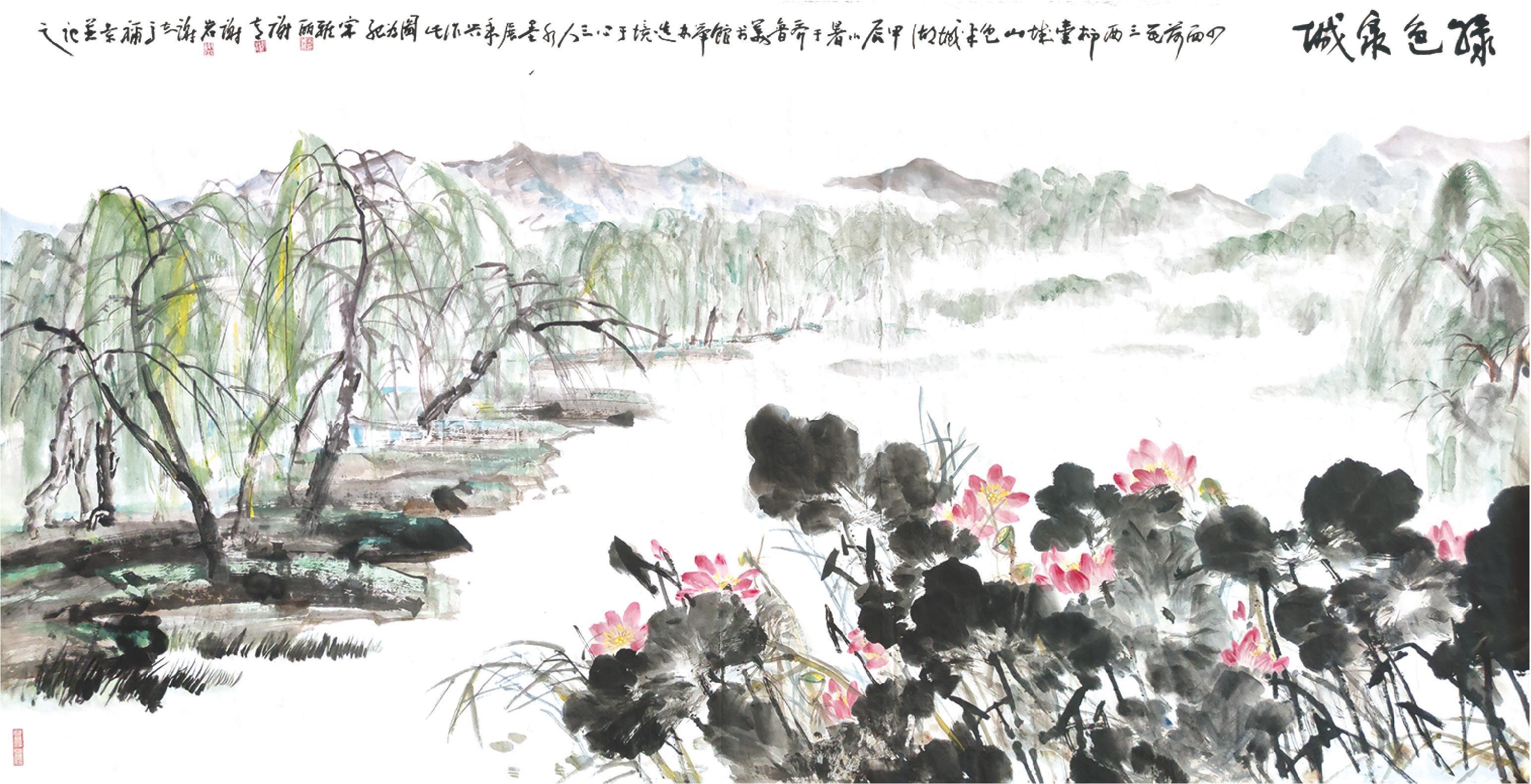 谢志高宋雅丽谢青谢岩合作国画《绿色泉城》