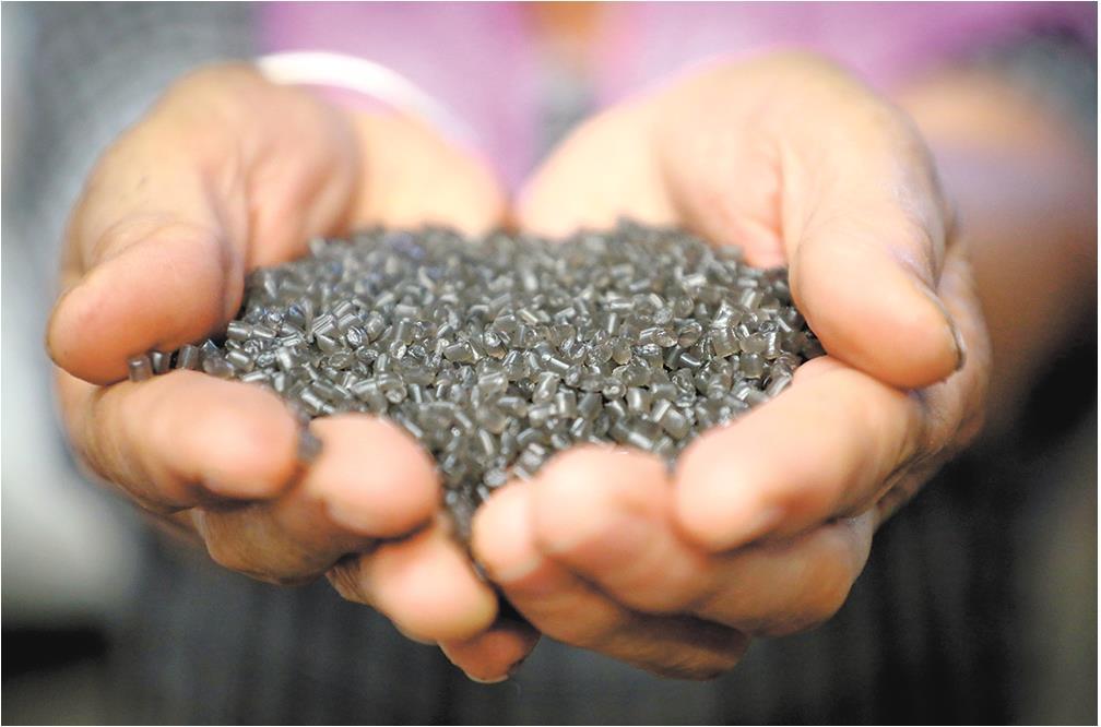 在聊城市茌平区的一家塑料改性造粒车间,废旧家电拆解下来的塑料,经过造粒设备加工后形成再生塑料。