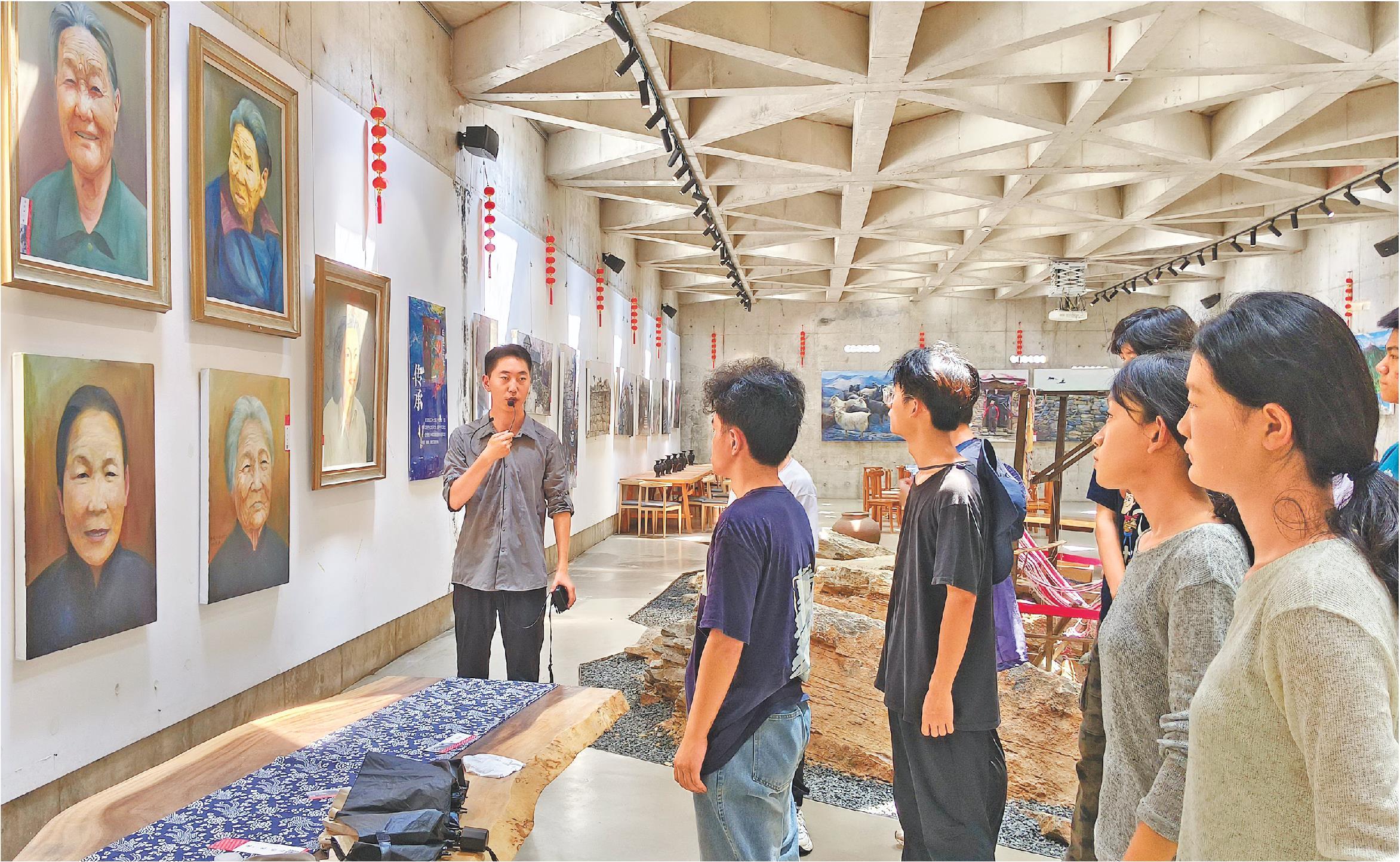 随着暑期的到来,沂南县迎来红色研学潮。图为近日进行红色研学的学生在沂南县朱家林美学馆观看红嫂画像展。