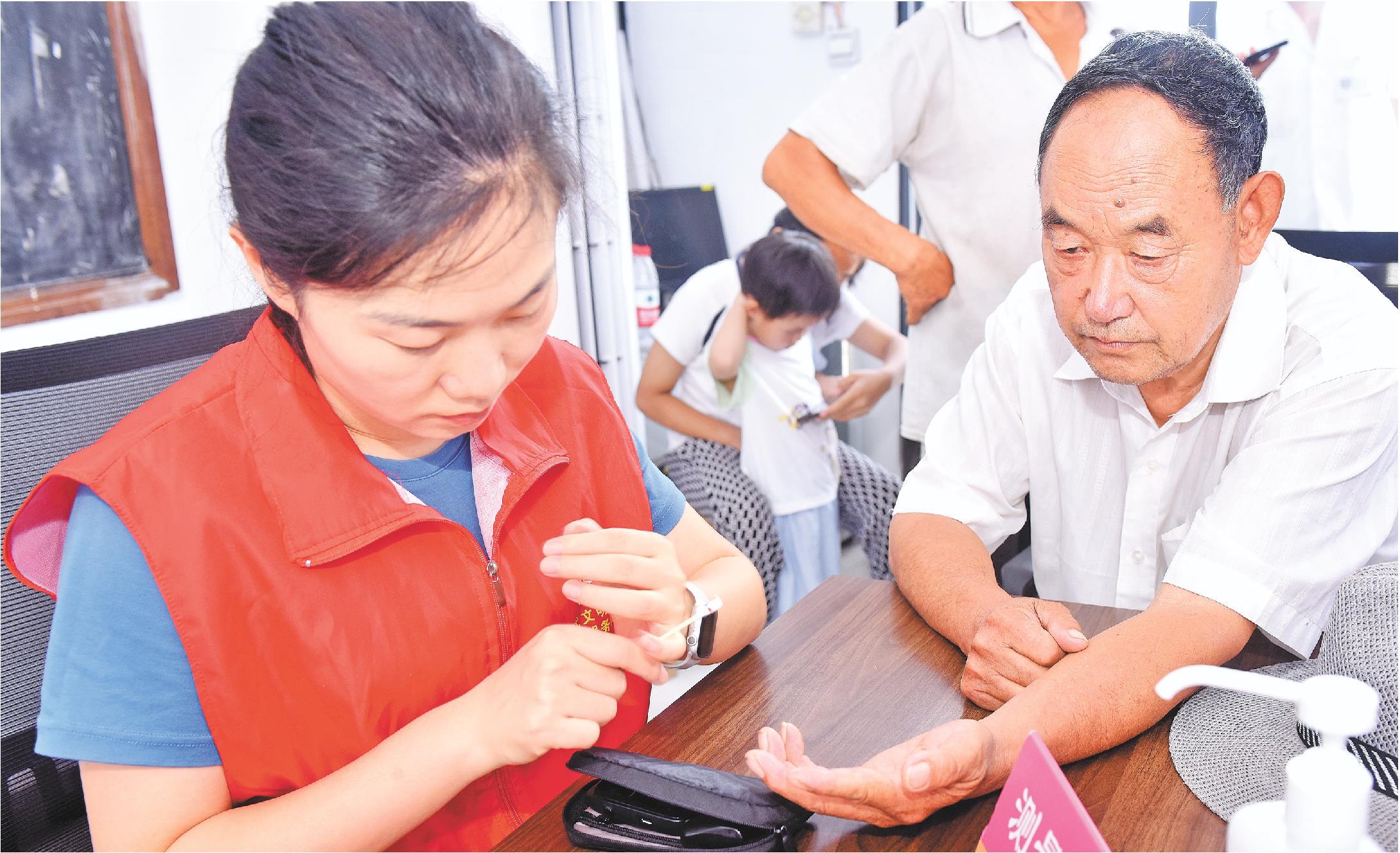 7月23日,经枣庄市山亭区水泉镇袁庄村省派第一书记孙星牵线搭桥,枣庄市妇幼保健院抽调眼科、内科、妇科、中医理疗科业务骨干组成专家团队,冒着酷暑来到袁庄村开展义诊活动,免费为村民检查眼疾、测量血压、诊治颈椎疾病等,并讲解常见病、多发病及自我保健知识,让乡亲们在家门口就能享受到贴心的专业医疗服务。