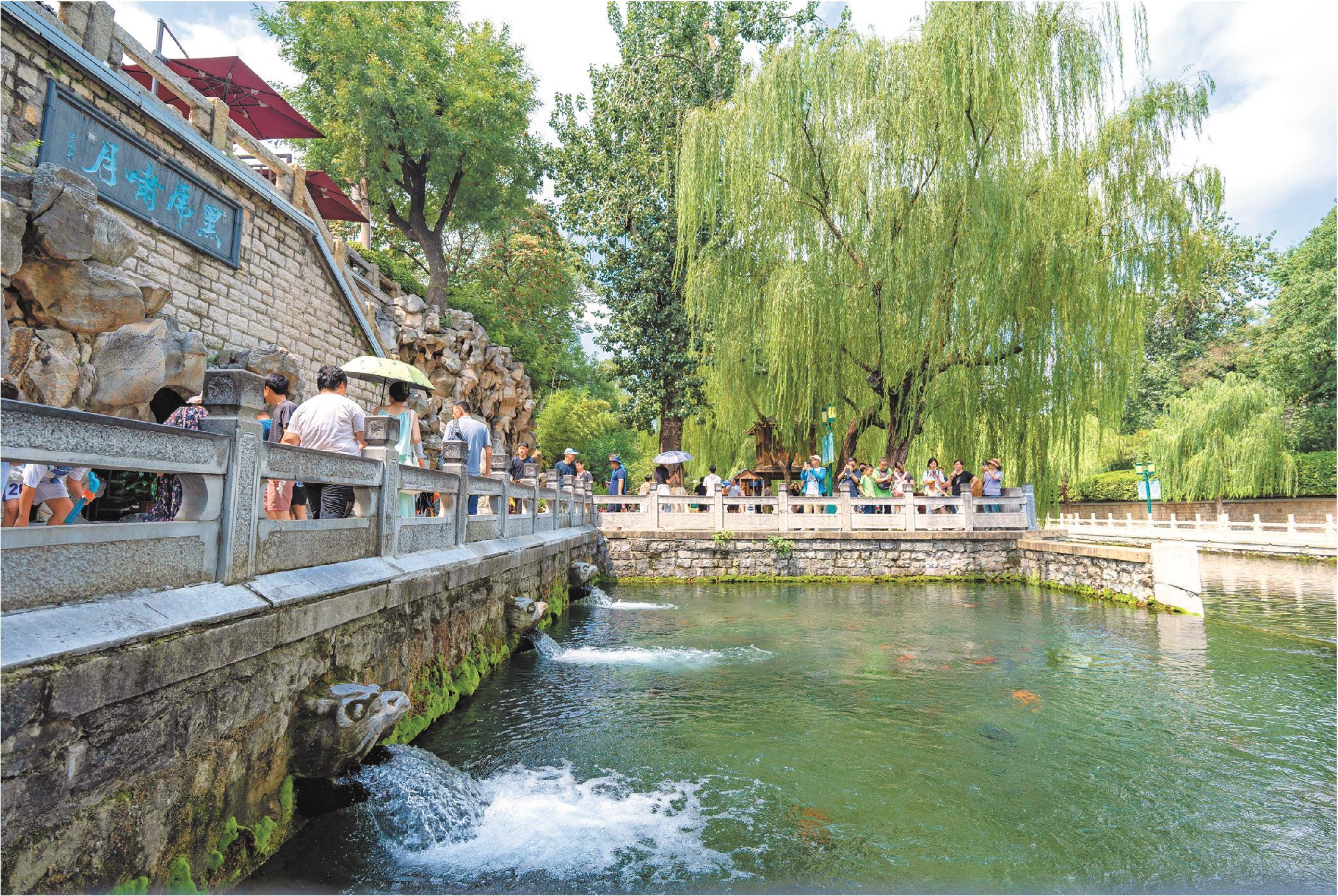 近日,济南迎来连日的晴好天气。8月2日,记者在黑虎泉边看到,不少市民和游客来到泉畔“打卡”。