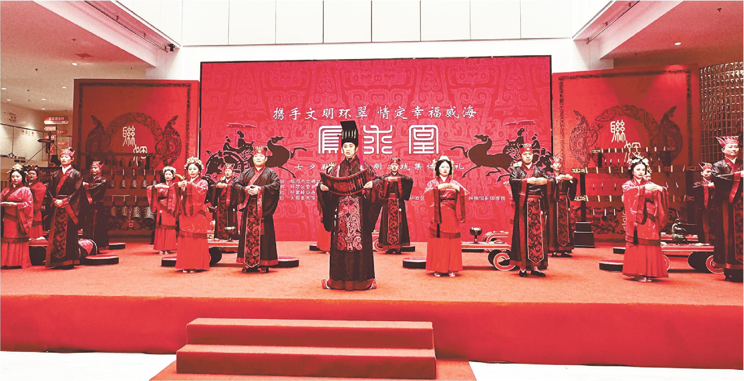 8月8日,“携手文明环翠 情定幸福威海”七夕新时代文明实践集体婚礼在天和美术馆举办。
