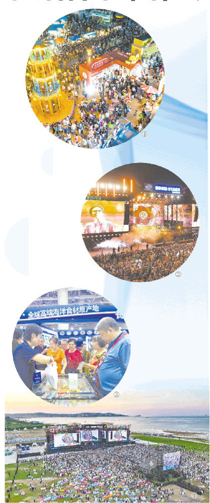 图①滨海广场游人如织,游客品尝各地美食。(□记者 冯彦文 通讯员 郭伟 报道)