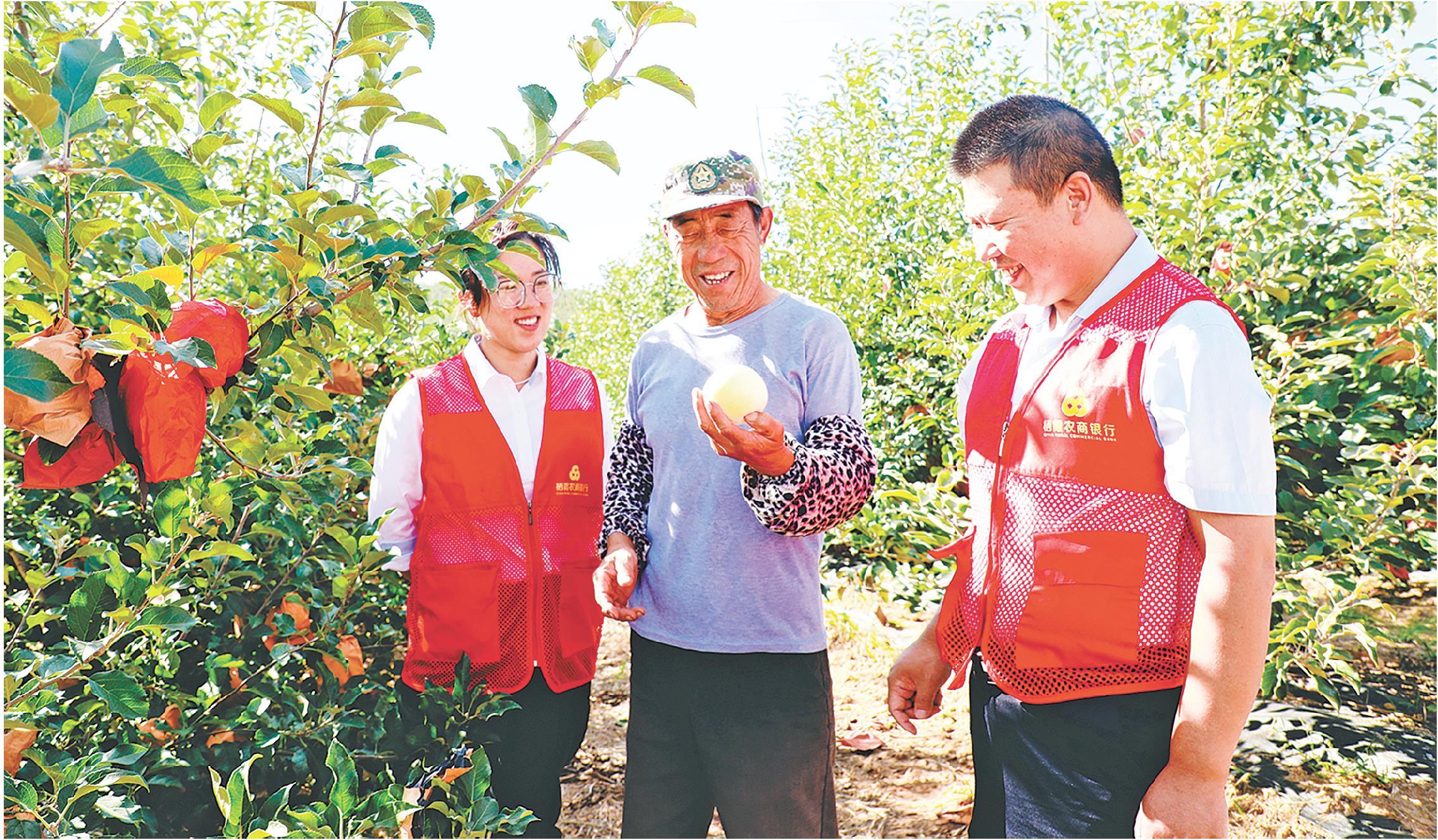 栖霞农商银行工作人员实地了解苹果种植情况。
