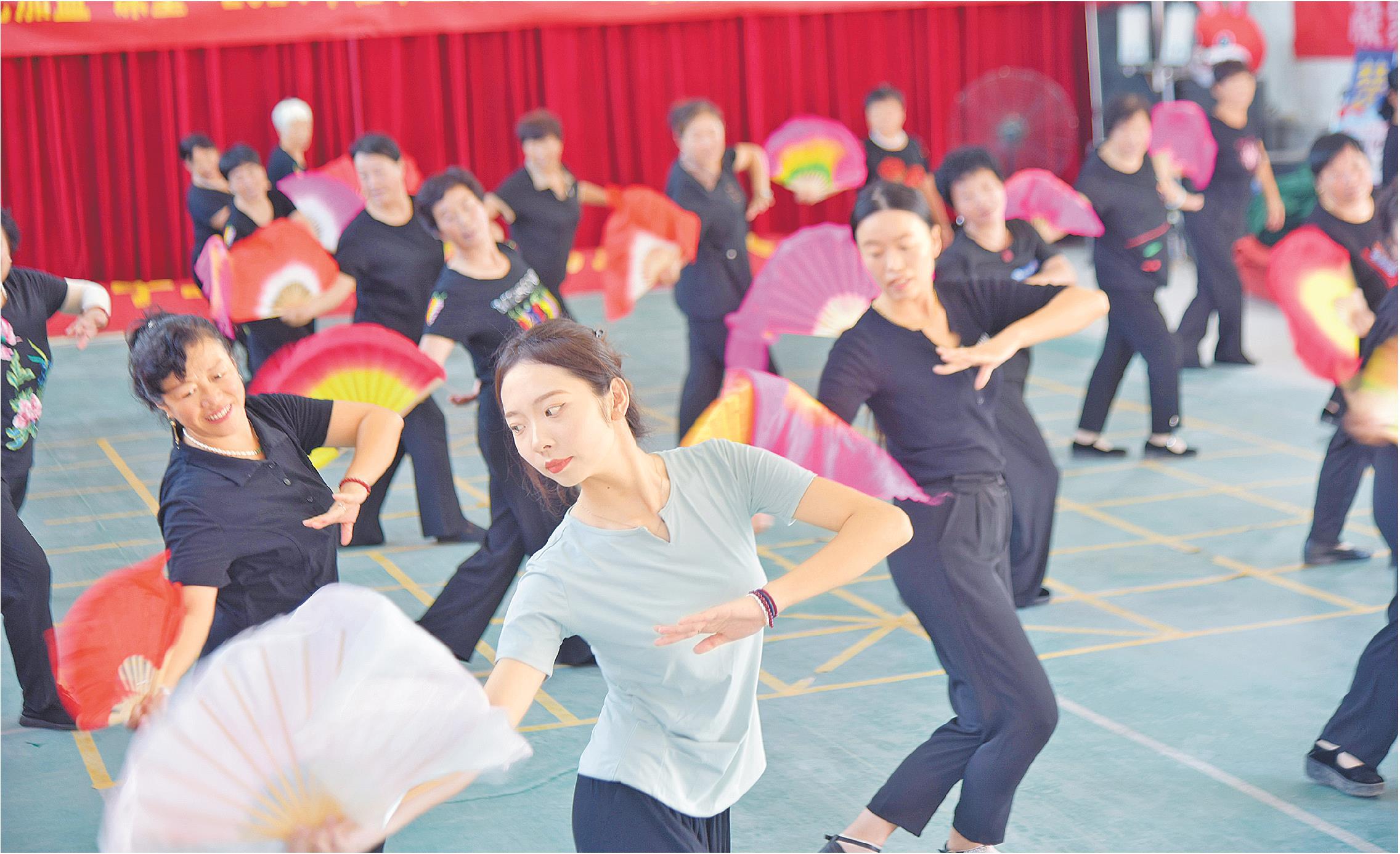 本报聊城讯 8月29日,在聊城市茌平区贾寨镇综合文化站文明实践大舞台,蒲公英的旅行——“艺加益”课堂2024年茌平区新时代文明实践文艺公益培训扇子舞表演正在举行(上图)。活动邀请了专业老师对该镇30多名扇子舞文艺骨干进行系统培训指导。