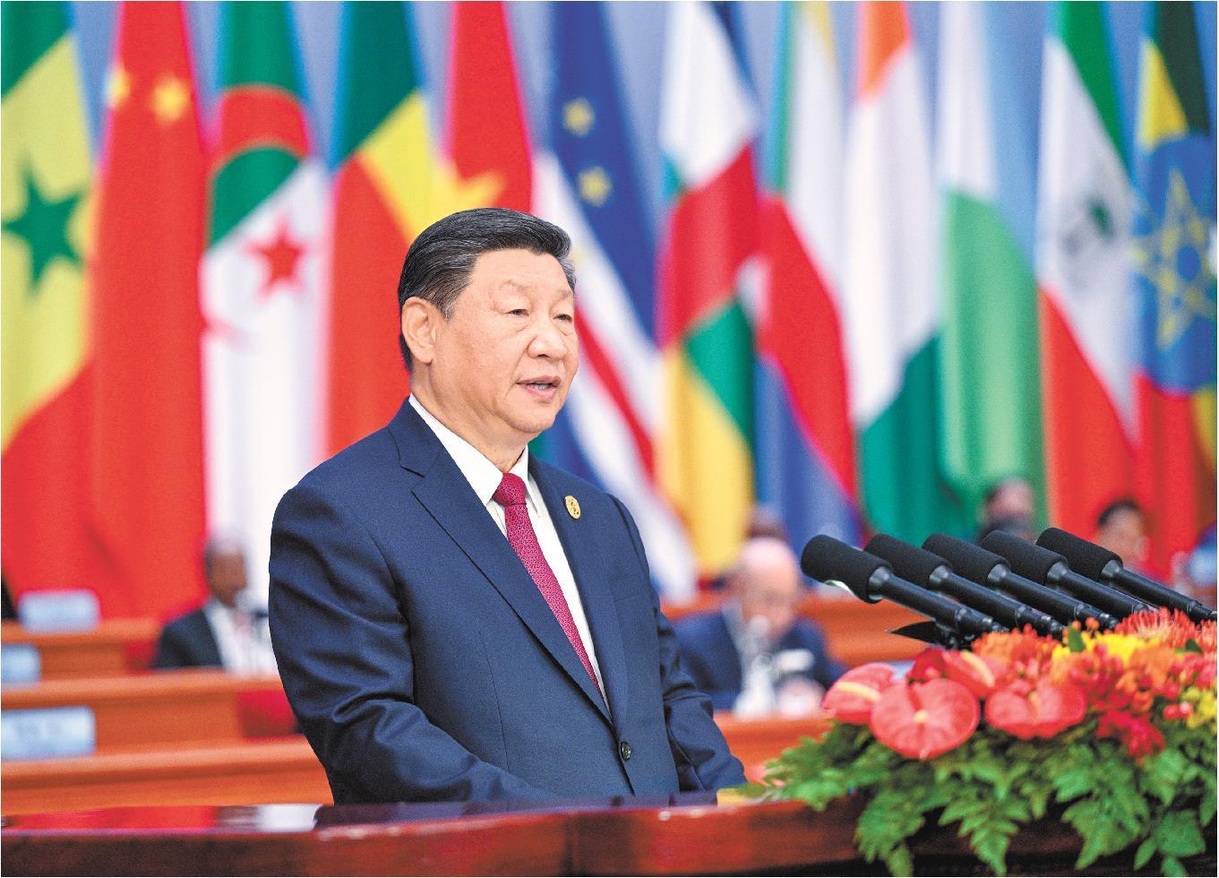 9月5日上午,国家主席习近平在北京人民大会堂出席中非合作论坛北京峰会开幕式并发表题为《携手推进现代化,共筑命运共同体》的主旨讲话。 □新华社记者 李学仁 报道