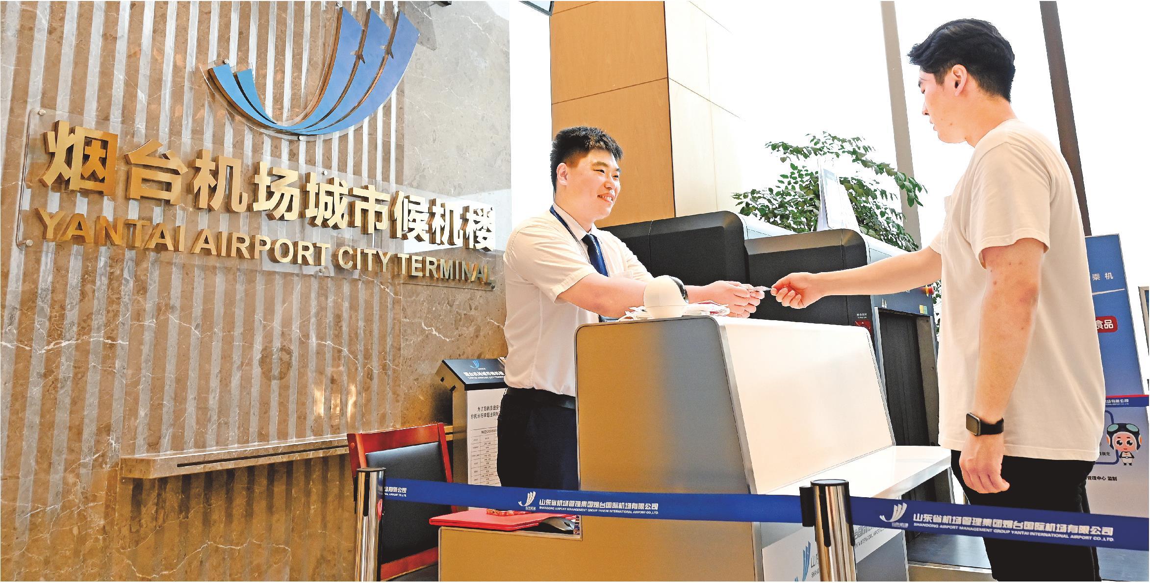 该城市候机楼紧邻八角湾国际会展中心,面积约100平方米,距烟台机场约20公里,车程约35分钟,可为旅客提供航班信息查询、国内国际机票购买、值机手续办理、托运行李预安检、机场往返班车及旅游资讯等“一站式”畅行服务,同时具备住宿、餐饮服务功能,真正构建起“空地联运、一体高效”的便捷综合交通体系。 当前,烟台机场正加快打造“面向东北亚的区域枢纽、中日韩航空货运集散地”,目前已与19个国家及地区、145个城市通航,每天国内客运航班超过110班。黄渤海新区城市候机楼启用后,将进一步丰富广大市民航空出行的交通接驳选择,在有效提升市民乘机地面交通出行体验的同时,也为烟台市打造骨干型全国性综合交通枢纽注入新的活力。