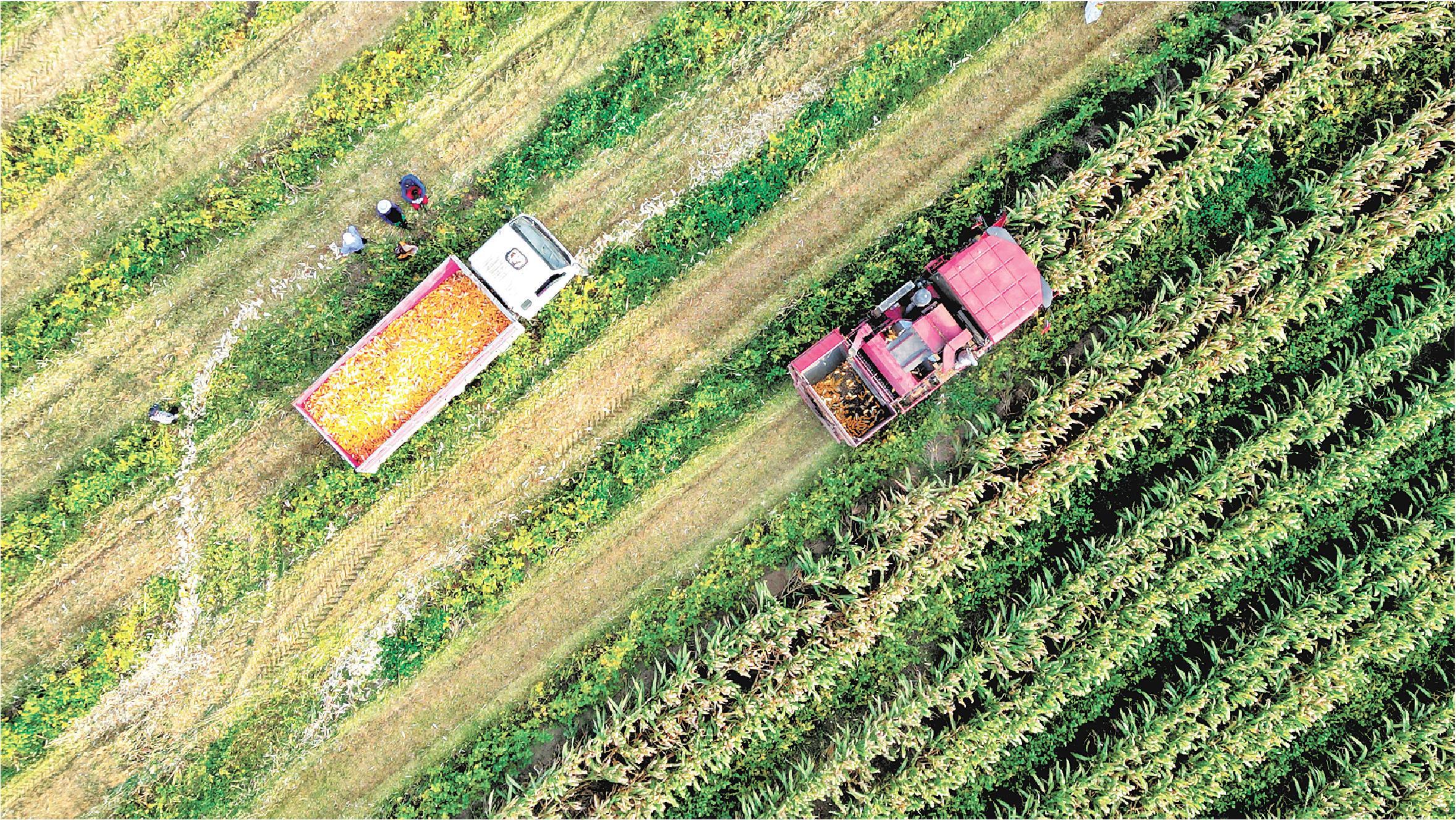 金秋时节,广饶县抢抓农时,确保秋粮颗粒归仓,田间地头一派忙碌的秋收景象。