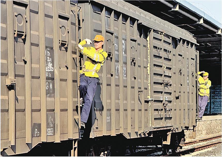 中铁十五局集团轨道交通运营公司山东铁路维管处加强现场作业盯控,狠抓“两纪一化”管理,全面把控作业安全及人身安全,确保安全生产零事故。图为山东铁路维管处连接员正在进行调车作业。