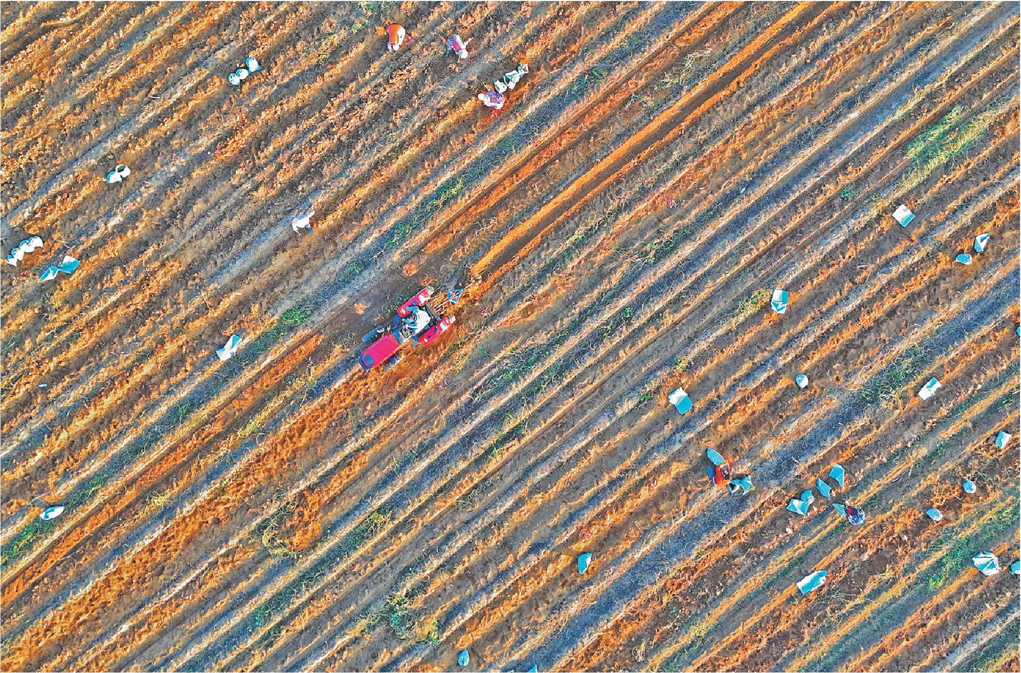 10月30日,烟台市福山区臧家庄镇埠后村农民在收获地瓜。